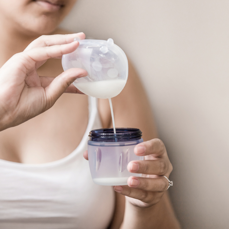 Once you have finished collecting your letdown,open the plug on the top and safely pour out your milk into a container or bottle.